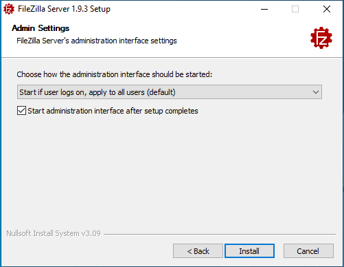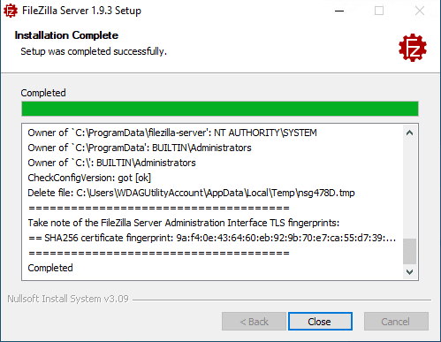 Đồng ý với điều khoảng của FileZilla Server